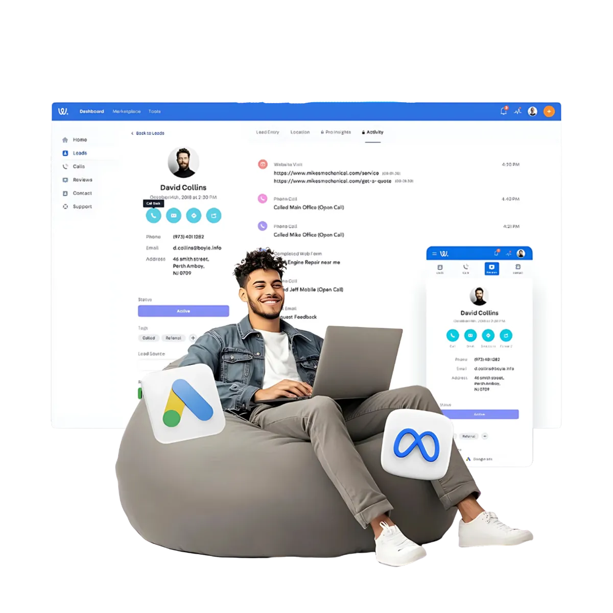 Track every click, phone call, meeting, website visit, instagram and facebook message your customer has with your business