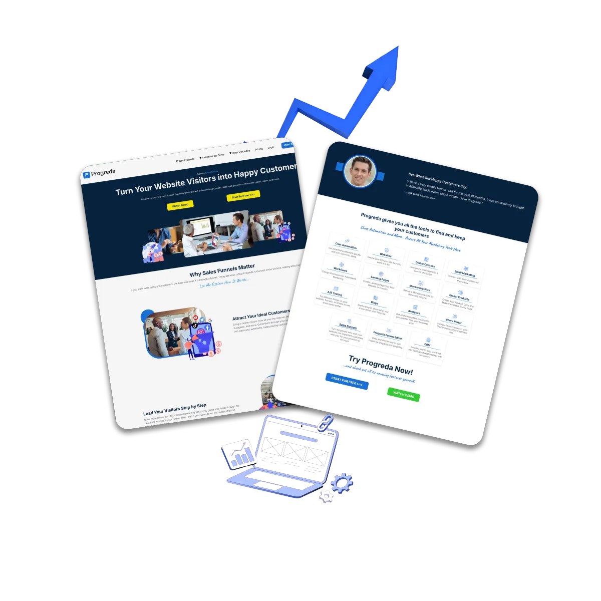 Progreda empowers entrepreneurs to capture leads to automate follow-ups and close more deals and scale their business off from one powerful all-in-one marketing and sales-platform with a 7-day trial and no contracts