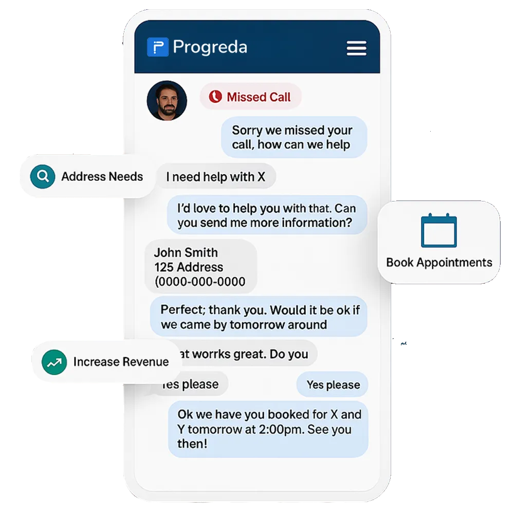Progreda uses Artificial Intelligence to capture leads, book appointments, and close more sales.