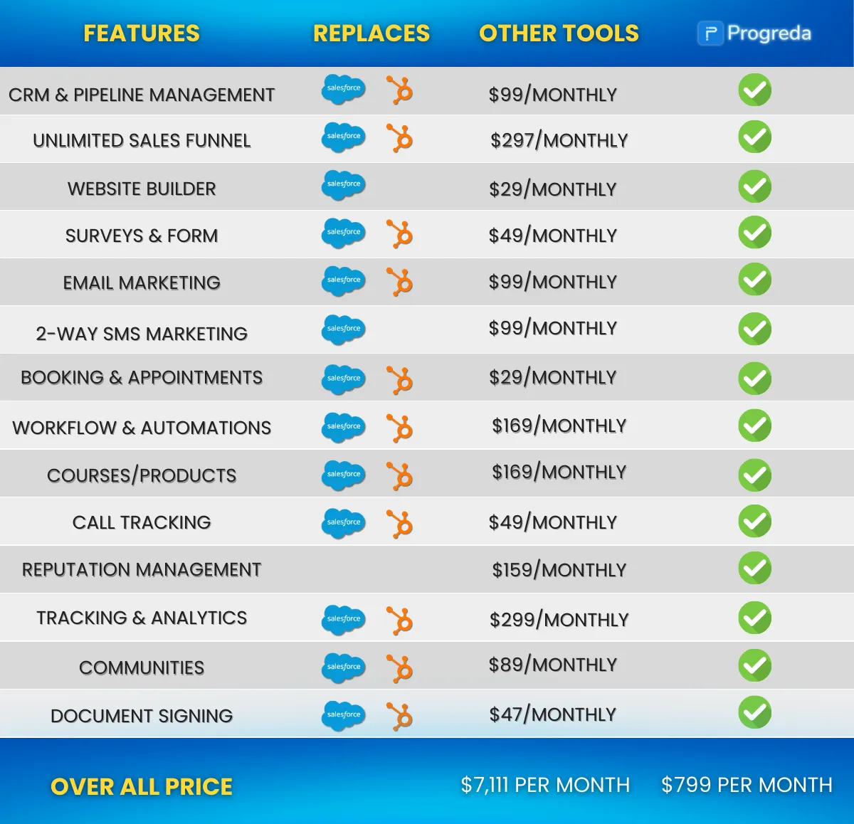 Imagine a world where you no longer rely on marketing agencies that overpromise and underdeliver. With Progreda, you can say goodbye to the frustration of paying more for ads that don't bring results. Our AI-powered solution makes it simple. You can use our prebuilt Facebook ads templates to easily run effective ads, then our prebuilt funnels to seamlessly book appointments. Finally, ensure your prospects show up with our prebuilt sales appointment reminders.